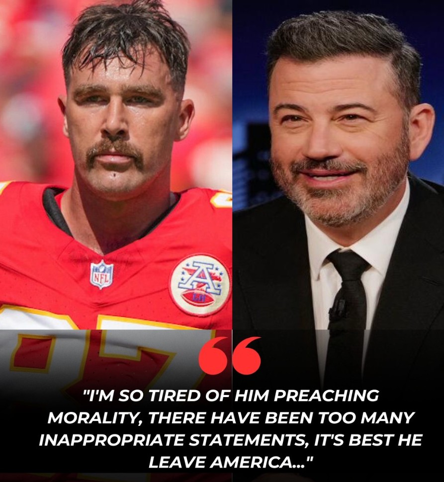 BREAKING NEWS: The wave of controversy surrounding Jimmy Kimmel after his inappropriate comments about those commemorating Charlie Kirk has not yet subsided, but recently, Chiefs star Travis Kelce has made public opinion even more agitated. In an interview, he bluntly criticized Kimmel: “He has crossed the line. With such offensive words, Jimmy Kimmel should leave America. We don’t need a fake ‘bad boy’ on television.”
